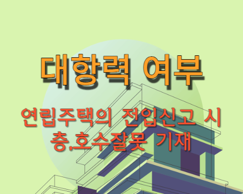 위 사안과 관련하여 판례는 “신축 중인 연립주택 중 1층 소재 주택의 임차인이 주민등록 이전 시 잘못된 현관문의 표시대로 1층 201호라고 전입신고를 마쳤는데, 준공후 그 주택이 공부상 1층 101호로 등재된 경우, 「주택임대차보호법」상의 대항력이 없다.”라고 하였습니다(대법원 1995. 8. 11. 선고 95다177 판결).