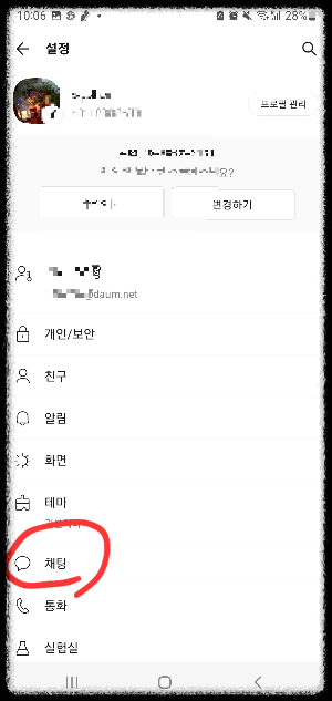 카카오톡 더보기로 들어가서 오른쪽 상단 설정 아이콘을 누릅니다.